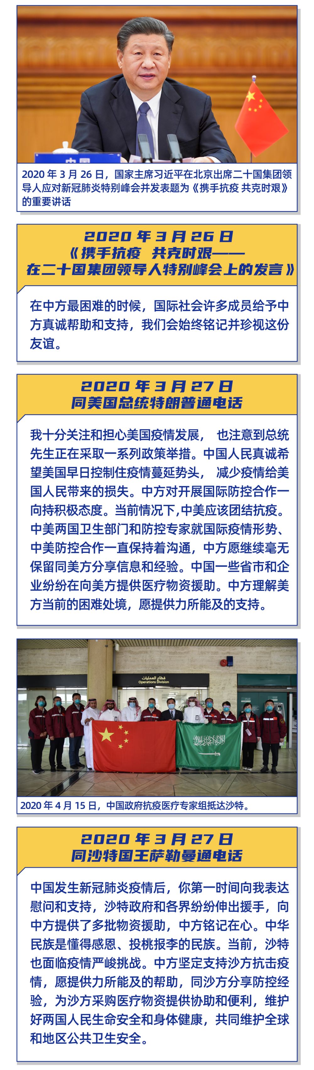 4月16日出版的第8期《求是》雜志發(fā)表中共中央總書(shū)記、國(guó)家主席、中央軍委主席習(xí)近平的重要文章《團(tuán)結(jié)合作是國(guó)際社會(huì)戰(zhàn)勝疫情最有力武器》。文章第三專(zhuān)題著重強(qiáng)調(diào):患難見(jiàn)真情,中方贊賞國(guó)際社會(huì)給予我們的寶貴理解和支持,中國(guó)人民銘記在心,中華民族是懂得感恩、投桃報(bào)李的民族,中方始終在力所能及范圍內(nèi)為國(guó)際社會(huì)抗擊疫情提供支持。
