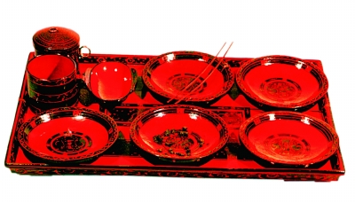 古代中國(guó)人分餐進(jìn)食,一般都是席地而坐,面前擺著一張低矮的小食案,案上放著輕巧的食具,重而大的器具直接放在席子外的地上。后來(lái)說(shuō)的“筵席”,正是這古老分餐制的一個(gè)寫(xiě)照。《后漢書(shū)·逸民傳》記隱士梁鴻受業(yè)于太學(xué),還鄉(xiāng)娶妻孟光,夫妻二人后來(lái)轉(zhuǎn)徙吳郡(今蘇州),為人幫工。梁鴻每當(dāng)打工回來(lái),孟光為他準(zhǔn)備好食物,并將食案舉至額前,捧到丈夫面前,以示敬重。孟光的舉案齊眉,成了夫妻相敬如賓的千古佳傳。又據(jù)《漢書(shū)·外戚傳》說(shuō):“許后朝皇太后,親奉案上食?!币?yàn)槭嘲覆淮蟛恢?,一般只限一人使用,所以婦人也能輕而易舉。