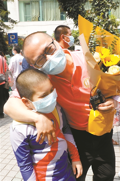 “兒子,爸爸打贏怪獸回來(lái)了!快來(lái)抱一個(gè)!”醫(yī)療隊(duì)員、“廣州實(shí)力中青年醫(yī)生”王川副主任醫(yī)師給9歲的兒子力力一個(gè)大大的擁抱。因?yàn)樵诔稣鲀x式上拿出兒子的奧特曼卡表達(dá)戰(zhàn)“疫”決心,這位內(nèi)分泌疾病專家在網(wǎng)絡(luò)上意外走紅,被網(wǎng)友稱為“奧特曼”爸爸。不過(guò),這張奧特曼卡不小心遺失在武漢了。當(dāng)天,力力特意穿了一件奧特曼衣服,帶著兩張全新的奧特曼卡,和媽媽一起來(lái)迎接爸爸回家。“我不在家的這段時(shí)間,感覺(jué)孩子變得更懂事了?!蓖醮ㄕf(shuō)道,“回家第一件事,我想給他們母子倆做一頓飯吃?!?/p>