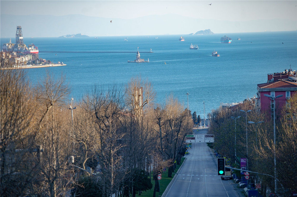 往日繁忙的博斯普魯斯海峽,如今只剩少量船只通航。