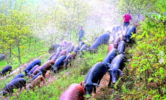 保安鎮(zhèn)東灣村,林坡資源豐富,遠(yuǎn)離人口密集區(qū)域,是生態(tài)養(yǎng)殖的好地方。周紅珍用4萬元積蓄,從外地購買了50余頭豬崽,開始養(yǎng)豬。因?yàn)闆]有經(jīng)驗(yàn),豬崽不到2個月全部死光,周紅珍欲哭無淚。經(jīng)過多方求教,得知是外地品種不適合山區(qū)氣候所致。她及時調(diào)整養(yǎng)殖策略,向親朋籌錢50余萬元,購買種豬、修建圈舍,并通過網(wǎng)絡(luò)學(xué)習(xí)養(yǎng)殖技術(shù),嘗試著繁殖豬崽。為了降低成本,從圈舍消毒、打掃衛(wèi)生、山坡放養(yǎng)、打疫苗,甚至是深夜接生,都是她和父親、哥嫂等家人完成,自己也成了一名“獸醫(yī)”。