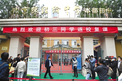 明日,北京8萬多名初三學(xué)生將正式復(fù)課。如何開展體育活動?出現(xiàn)突發(fā)事件如何進(jìn)行處理?5月8日,記者對北京市朝陽區(qū)陳經(jīng)綸中學(xué)本部初中進(jìn)行探訪。