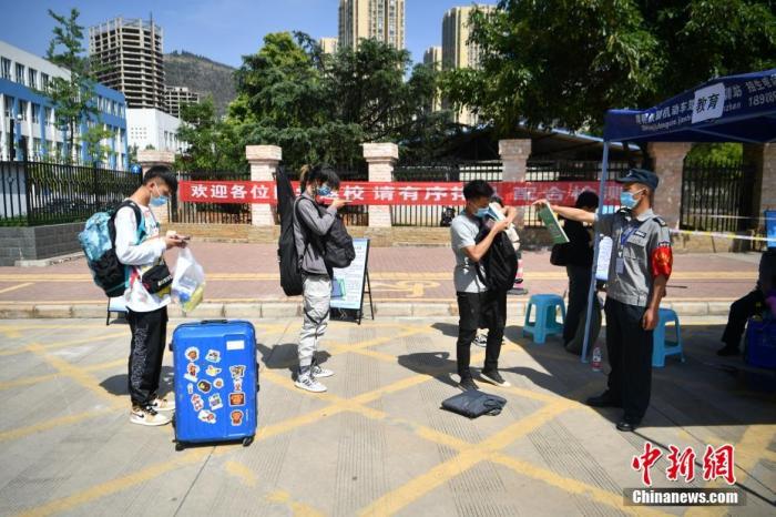 資料圖:5月11日,云南一高校返校學(xué)生間隔排隊、掃碼進校園。記者 劉冉陽 攝