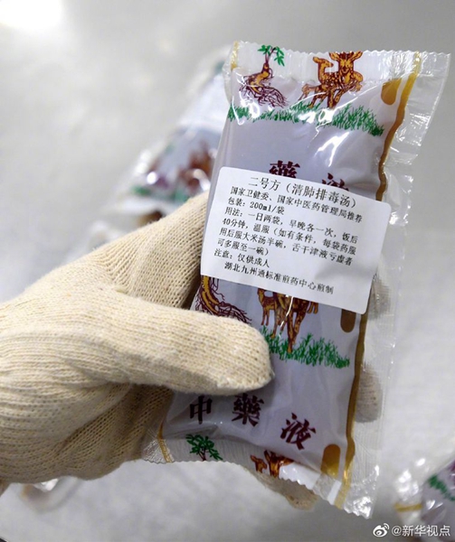 說明還對“清肺排毒湯”的煎煮方法、程序和使用方法等進行了規(guī)范。例如,“清肺排毒湯”應(yīng)使用傳統(tǒng)中藥飲片調(diào)配,水煎煮使用,共煎共煮程序必不可少;為確保藥力精純,不建議與其他方劑、藥物(包括中成藥)同時使用。