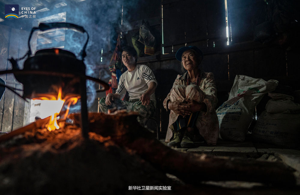 ↑從衛(wèi)星可見,托坪村舊址“消失”,與高黎貢山的綠色融為一體。
