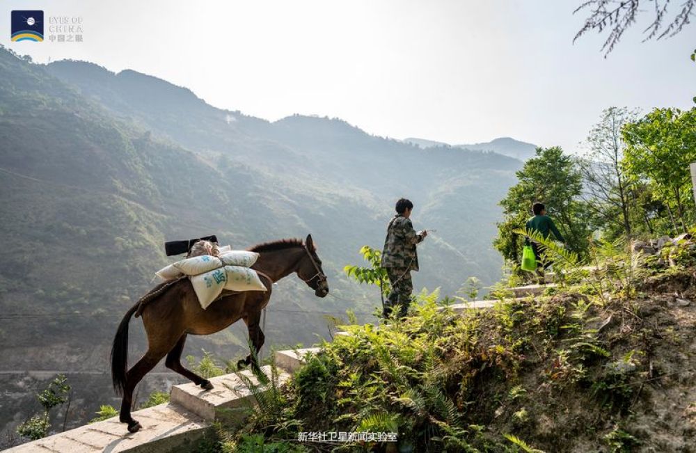托坪村小組不通路,只有一條很陡的人馬驛道——近60度的斜坡路。生活物資進山全靠人背馬馱。