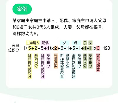 無論是幾代人家庭,家庭與個(gè)人都是在一個(gè)池子里搖號。家庭總積分和個(gè)人階梯數(shù)即為該家庭或個(gè)人的申請編碼出現(xiàn)在搖號池中的次數(shù),申請編碼出現(xiàn)的次數(shù)越多,中簽率越高。