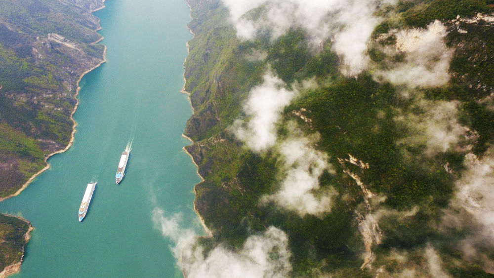 重慶奉節(jié)瞿塘峽一帶景色(無(wú)人機(jī)照片,2019年3月28日攝)。新華社記者 王全超 攝