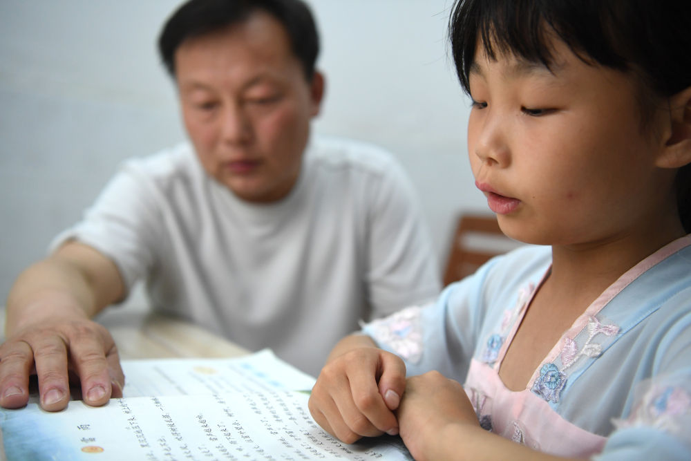↑?鄭加衛(wèi)在輔導小思揚學習。
