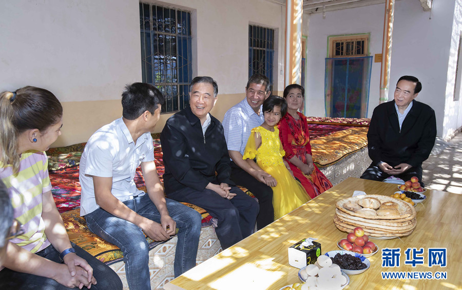 6月8日至12日,中共中央政治局常委、全國政協(xié)主席汪洋在新疆調(diào)研。這是6月11日,汪洋在喀什調(diào)研時與當?shù)卮迕裼H切交談。 新華社記者 李濤 攝