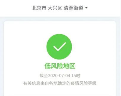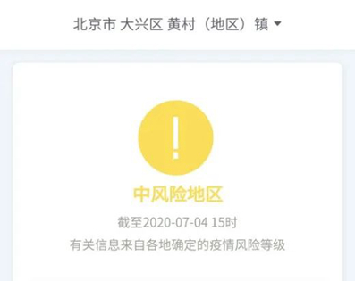 北京日報記者從國務(wù)院客戶端小程序“疫情風(fēng)險等級”了解到,截至7月4日15時,北京市大興區(qū)天宮院街道、清源街道由中風(fēng)險地區(qū)調(diào)整為低風(fēng)險地區(qū);北京市大興區(qū)黃村(地區(qū))鎮(zhèn)由高風(fēng)險降級為中風(fēng)險。