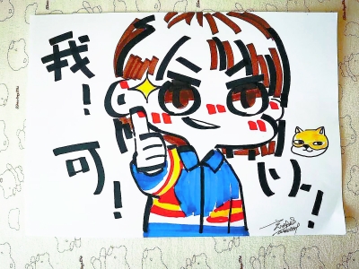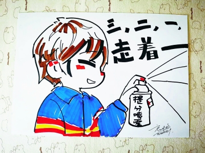 高二時,這一傳統(tǒng)得以延續(xù)。今年,從給學長們吶喊加油,輪到了為自己和同學們鼓勁打氣。在漫畫的創(chuàng)作風格上,張亦萱也做了調(diào)整。“之前愛心的元素會更多一些,今年會更活潑一些,希望能讓人看了更輕松?!睆堃噍嬲f,自己從小學開始學美術(shù),對她來說,畫畫不難,難的是創(chuàng)意和構(gòu)思。最開始畫的時候,想法很多,從網(wǎng)上獲得了不少靈感;后來,為了不跟別人重復,她開始翻各種表情包,力求好玩兒有趣。