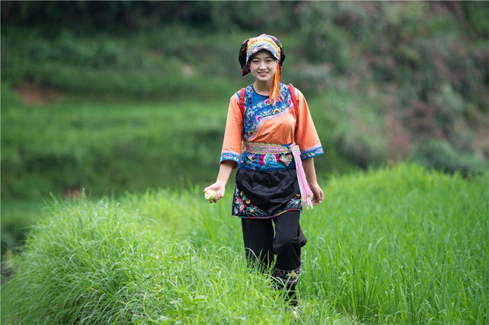 這是在湘西十八洞村拍攝的返鄉(xiāng)創(chuàng)業(yè)大學生施林嬌(7月3日攝)。新華社記者 陳思汗 攝