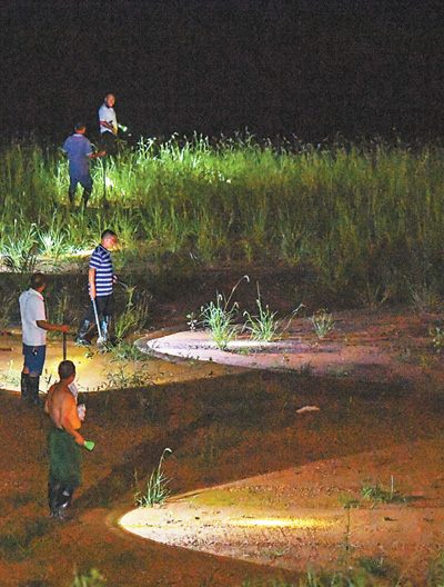 11日,湖南岳陽(yáng)市君山區(qū)的洞庭湖大堤上,抗洪人員在巡堤查險(xiǎn)。新華社記者 陳澤國(guó)攝