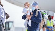 在湖南省岳陽市華容縣藕池河旁,徐慶九(右)潛水排險作業(yè)后在隊友的幫助下卸下氧氣罐(7月13日攝)。新華社記者 陳澤國 攝