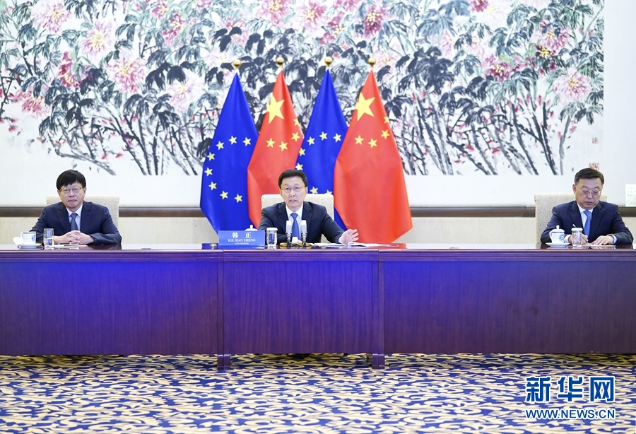 韓正同歐盟委員會(huì)第一副主席蒂默曼斯舉行視頻會(huì)見