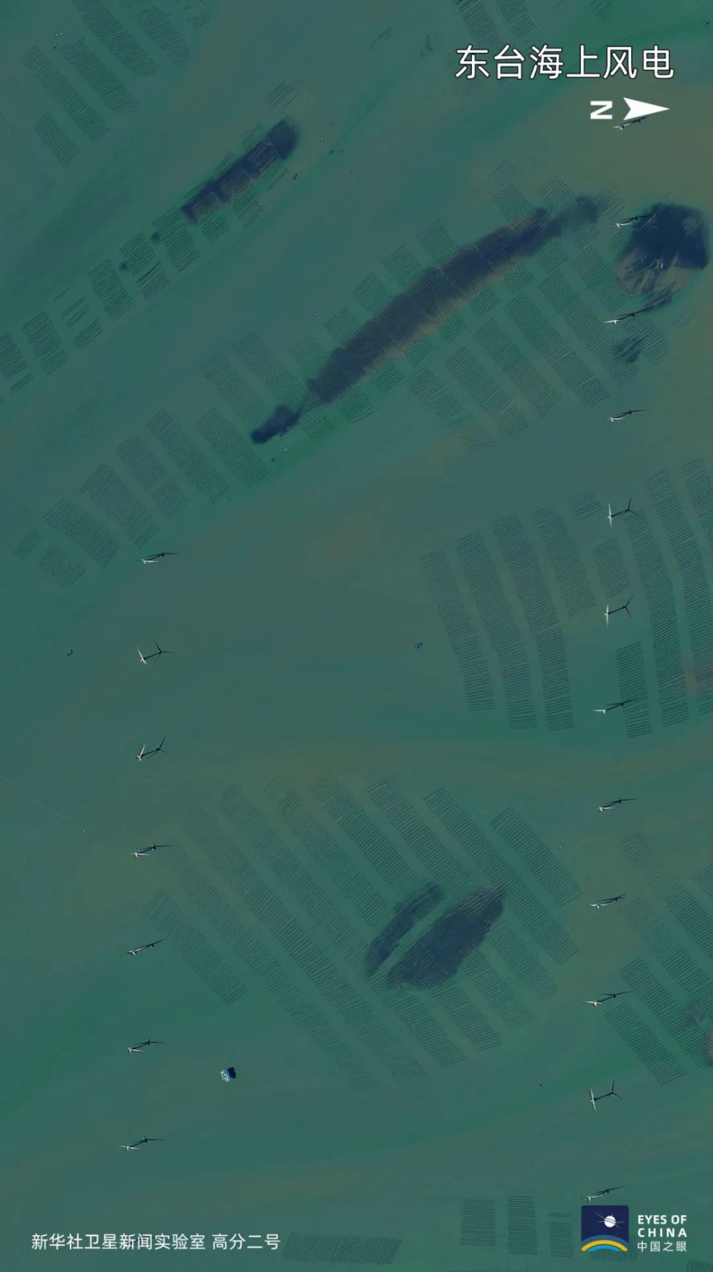 江蘇東臺(tái),漁排間的海上風(fēng)電機(jī)星星點(diǎn)點(diǎn)。2019年中國(guó)可再生能源發(fā)電總裝機(jī)容量達(dá)到7.94億千瓦,占全部電力裝機(jī)的39.5%。