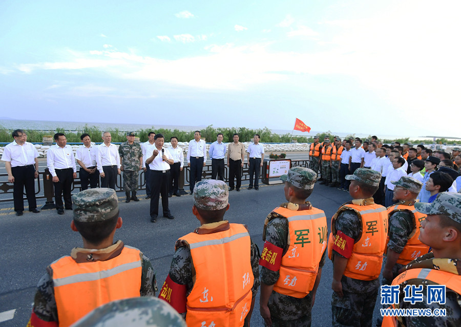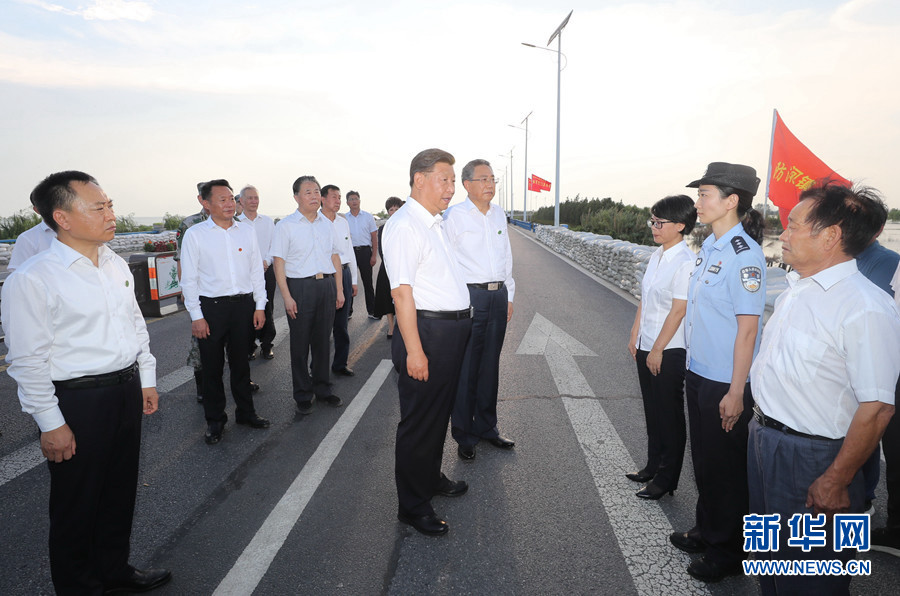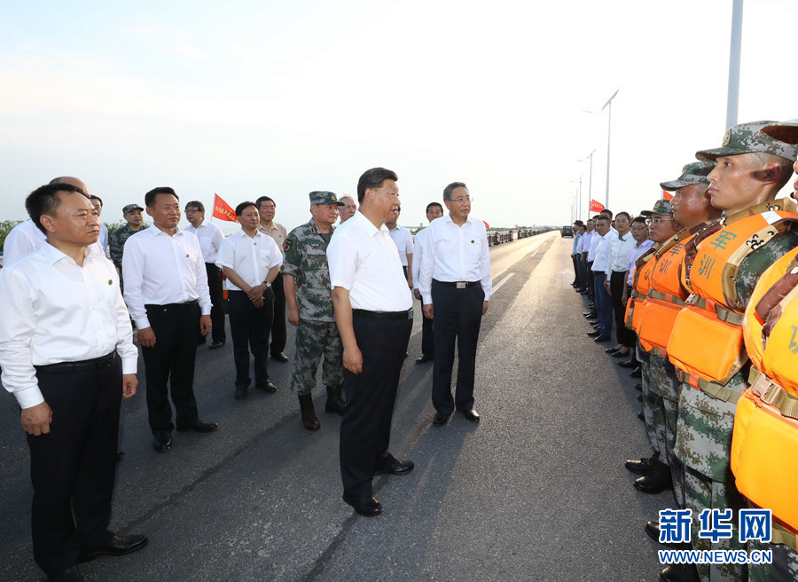 19日下午,習近平來到合肥市肥東縣十八聯(lián)圩生態(tài)濕地蓄洪區(qū)巢湖大堤羅家疃段考察。今年入汛以來,巢湖水位多次突破歷史極值,合肥市主動啟用十八聯(lián)圩及周邊圩區(qū)蓄洪。習近平仔細察看巢湖水勢水情,聽取環(huán)巢湖主要圩口分洪及周邊濕地蓄洪、巢湖綜合治理情況匯報,了解防汛物資和大堤加固情況。他強調(diào),要堅持濕地蓄洪區(qū)的定位和規(guī)劃,盡快恢復生態(tài)濕地蓄洪區(qū)的行蓄洪功能和生態(tài)保護功能。他指出,當前,南方有關(guān)地方要繼續(xù)抓好防汛救災工作,同時要嚴防次生災害。北方有關(guān)地方要對可能發(fā)生的汛情加強警戒和防范,全面落實防汛救災各項工作,確保安全度汛,確保人民群眾生命財產(chǎn)安全。