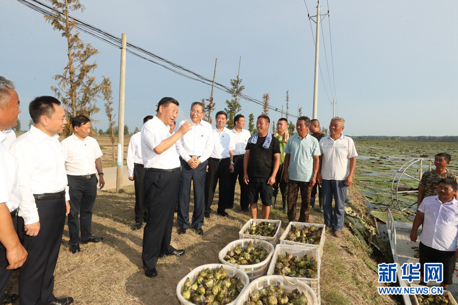 8月18日至21日,中共中央總書記、國家主席、中央軍委主席習近平在安徽省考察。這是18日下午,習近平在阜陽市阜南縣蒙洼蓄洪區(qū),同正在勞作的鄉(xiāng)親們親切交流。 新華社記者 鞠鵬 攝