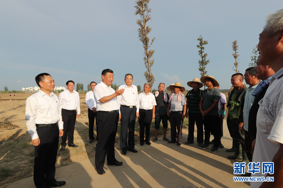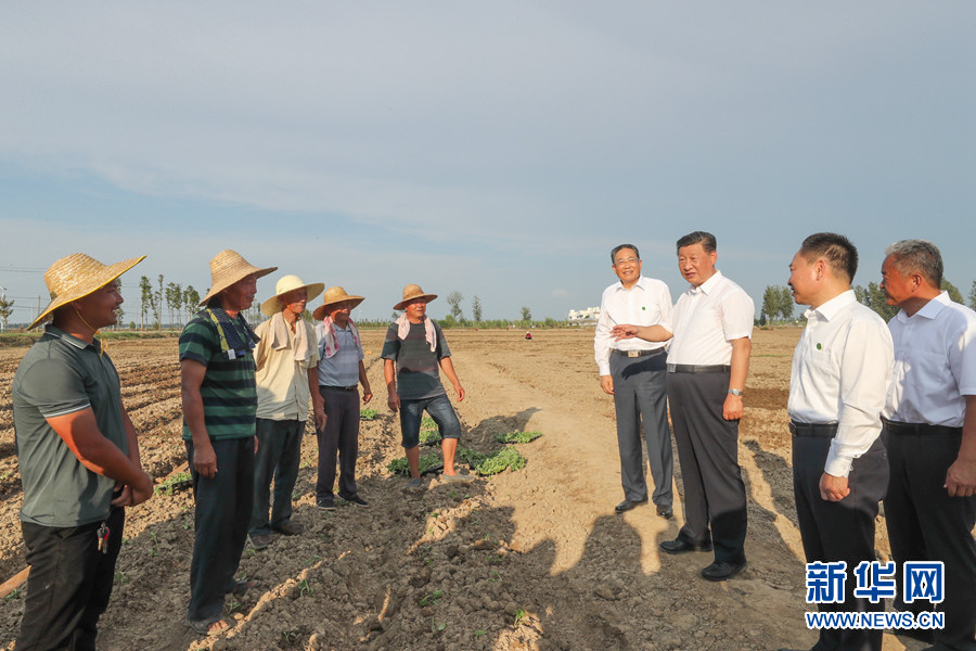 8月18日至21日,中共中央總書記、國家主席、中央軍委主席習近平在安徽省考察。這是18日下午,習近平在阜陽市阜南縣蒙洼蓄洪區(qū),同正在退水地塊補種蔬菜的鄉(xiāng)親們親切交流。 新華社記者 鞠鵬 攝