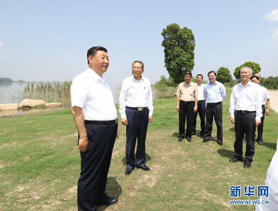 8月18日至21日,中共中央總書記、國家主席、中央軍委主席習近平在安徽省考察。這是19日下午,習近平在合肥市肥東縣十八聯(lián)圩生態(tài)濕地蓄洪區(qū)巢湖大堤羅家疃段考察,了解當?shù)胤姥纯购楹统埠C合治理情況。 新華社記者 王曄 攝