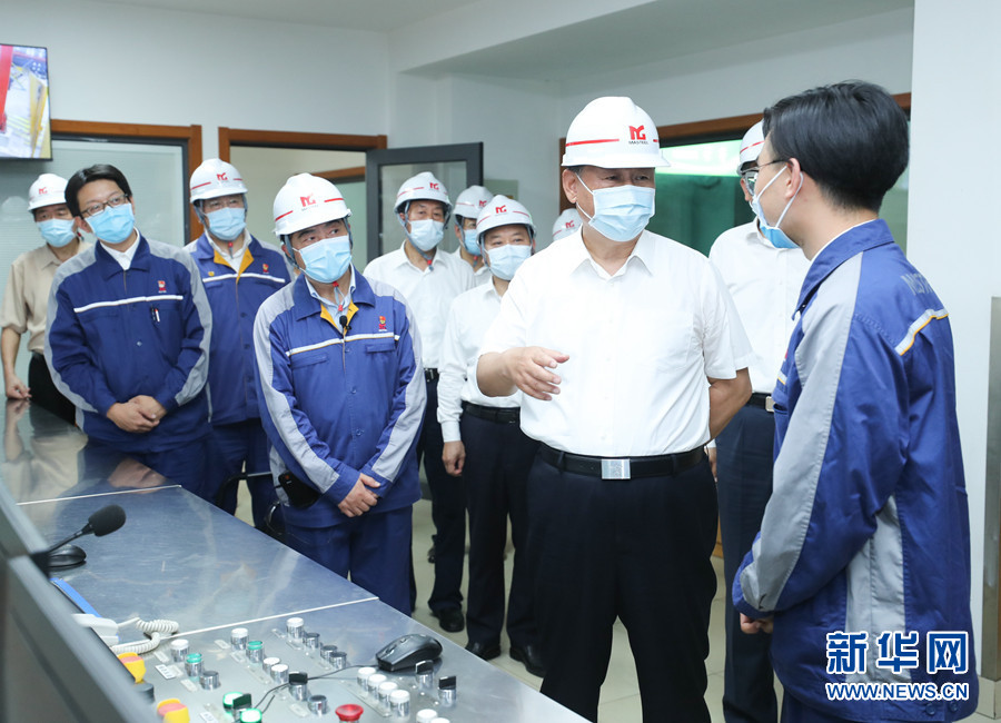 8月18日至21日,中共中央總書記、國家主席、中央軍委主席習近平在安徽省考察。這是19日上午,習近平在馬鞍山市中國寶武馬鋼集團優(yōu)質(zhì)合金棒材車間考察,了解企業(yè)復工復產(chǎn)和經(jīng)營情況。 新華社記者 王曄 攝
