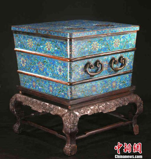 ↑清乾隆款掐絲琺瑯寶相花大冰箱。沈陽(yáng)故宮供圖