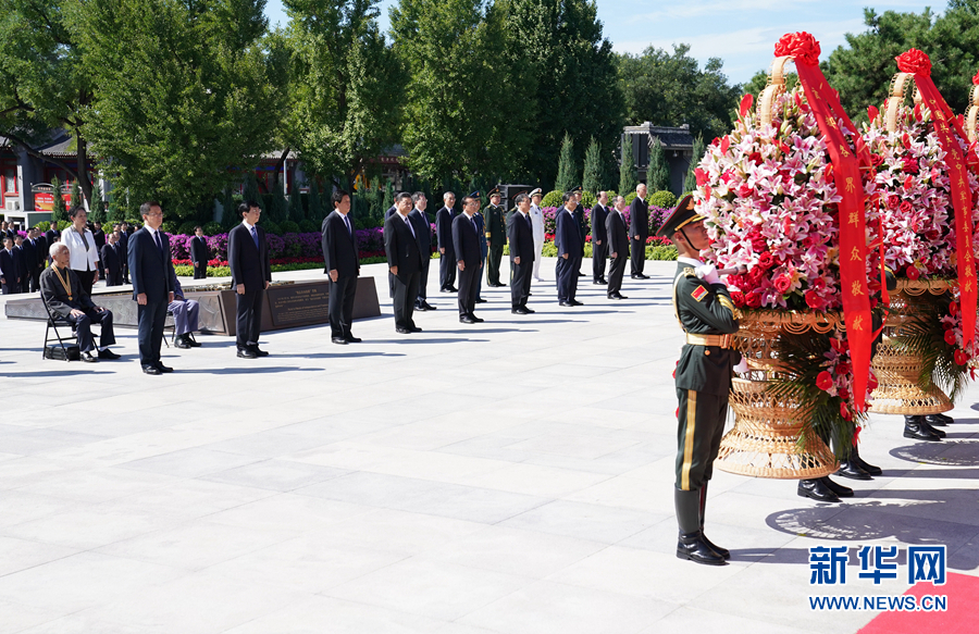 9月3日上午,習(xí)近平、李克強(qiáng)、栗戰(zhàn)書、汪洋、王滬寧、趙樂際、韓正、王岐山等黨和國家領(lǐng)導(dǎo)人來到中國人民抗日戰(zhàn)爭紀(jì)念館,出席紀(jì)念中國人民抗日戰(zhàn)爭暨世界反法西斯戰(zhàn)爭勝利75周年向抗戰(zhàn)烈士敬獻(xiàn)花籃儀式。 新華社記者 王曄 攝