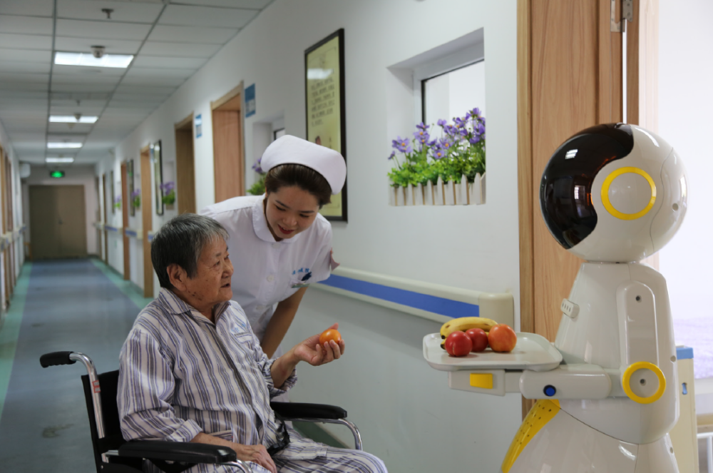 情感陪護機器人服務老年患者。(沈陽安寧醫(yī)院供圖)