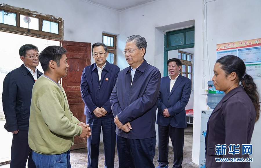 這是9月14日,趙樂際來到畢節(jié)市威寧縣格書村,走訪慰問貧困戶。 新華社記者 張領 攝
