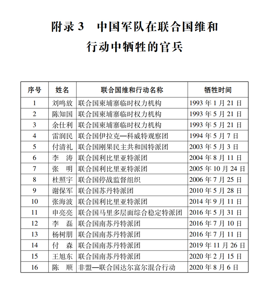 附錄3中國軍隊(duì)在聯(lián)合國維和行動(dòng)中犧牲的官兵