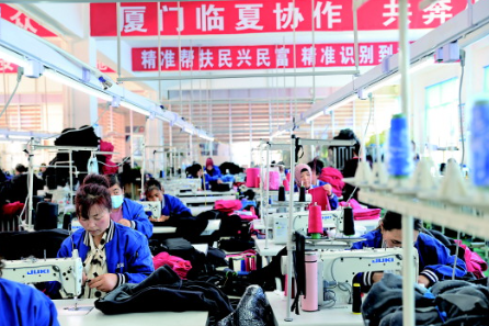 廈門援建臨夏的廈臨遠(yuǎn)達(dá)服飾扶貧車間。