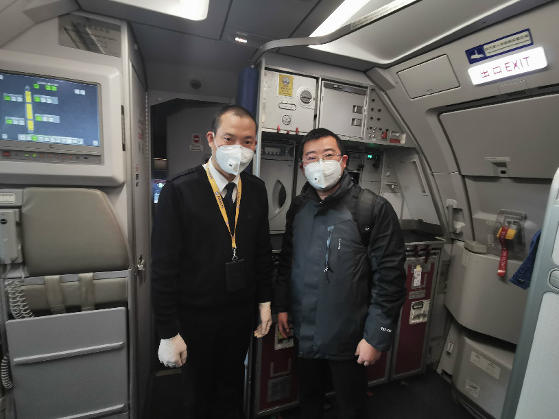 四川廣播電視臺 張藝2020年2月2日采訪“英雄機長“劉傳建并合影,當(dāng)天英雄機長送戰(zhàn)疫英雄前往武漢