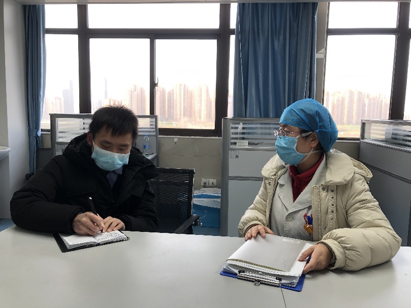 2月21日,范昊天(左一)在襄陽(yáng)市中心醫(yī)院東津院區(qū)采訪