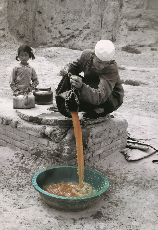 寧夏攝影家王恒德20年前拍攝的田風(fēng)祥和女兒在水窖中汲水照片是西海固地區(qū)吃水難的真實(shí)寫照。(王恒德 攝)