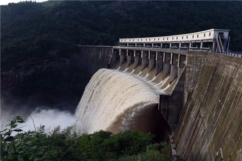 位于安徽省金寨縣的流波水庫在進行泄洪(6月16日攝)。新華社記者 周牧 攝