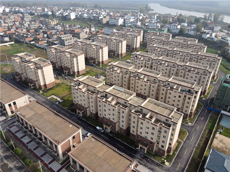 這是位于安徽省阜南縣王家壩鎮(zhèn)淮上社區(qū)的莊臺疏解降容工程居民安置點(10月16日攝,無人機照片)。新華社記者 周牧 攝