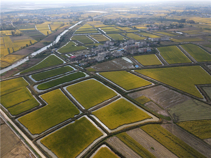 這是10月8日拍攝的安徽省潁上縣八里河鎮(zhèn)的稻田(無人機照片)。新華社記者 周牧 攝