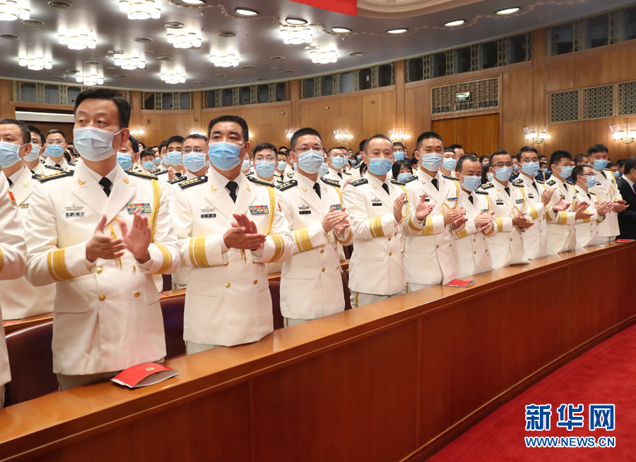 ??? 10月23日,紀念中國人民志愿軍抗美援朝出國作戰(zhàn)70周年大會在北京人民大會堂隆重舉行。圖為志愿軍老戰(zhàn)士、老同志入場時,大會現(xiàn)場的解放軍和武警部隊官兵代表起立鼓掌。(新華網(wǎng) 翟子赫 攝)