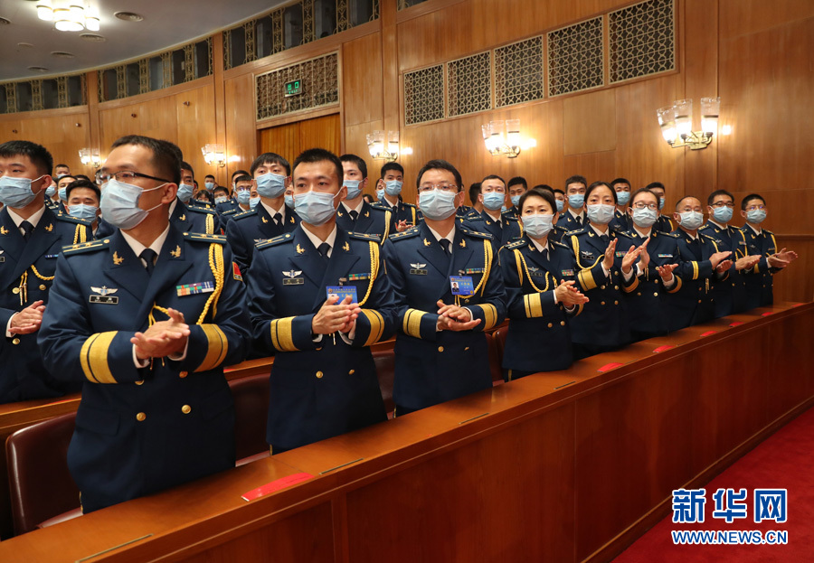 ??? 10月23日,紀念中國人民志愿軍抗美援朝出國作戰(zhàn)70周年大會在北京人民大會堂隆重舉行。圖為志愿軍老戰(zhàn)士、老同志入場時,大會現場的解放軍和武警部隊官兵代表起立鼓掌。(新華網 翟子赫 攝)