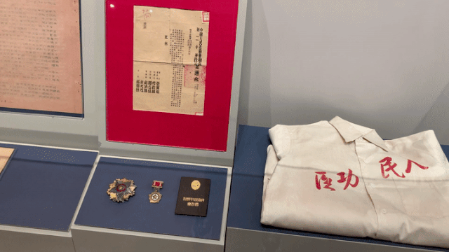 “紀(jì)念中國(guó)人民志愿軍抗美援朝出國(guó)作戰(zhàn)70周年主題展覽”中,展出的楊根思遺物。新華每日電訊記者劉小草攝