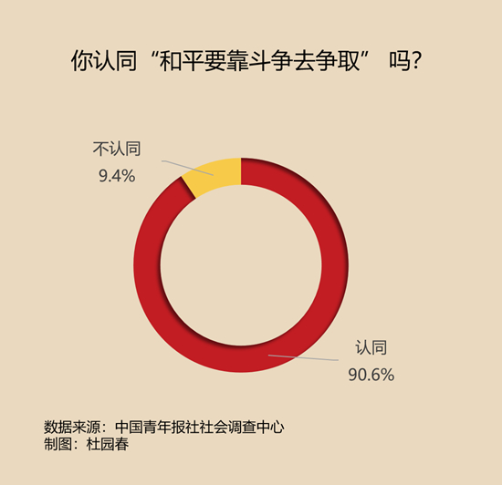 調(diào)查中,有90.6%的受訪(fǎng)者認(rèn)同“和平要靠斗爭(zhēng)去爭(zhēng)取”這句話(huà)。