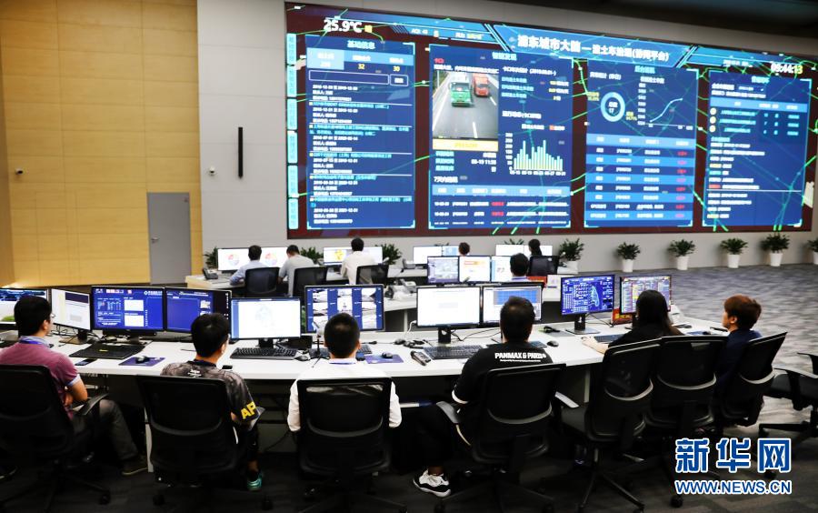 工作人員在上海市浦東新區(qū)城市運(yùn)行管理中心內(nèi)工作(2019年8月31日攝)。新華社記者 方喆 攝