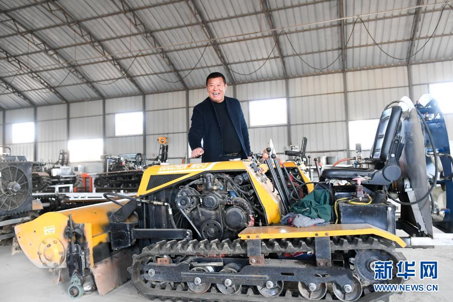 燒鍋村黨總支書記戴振武在展示他研發(fā)的能夠完成除草、施肥、灑藥等工作的綜合山地管理機(jī),取名“果榛?!保?1月9日攝)。新華社記者 顏麟蘊(yùn) 攝