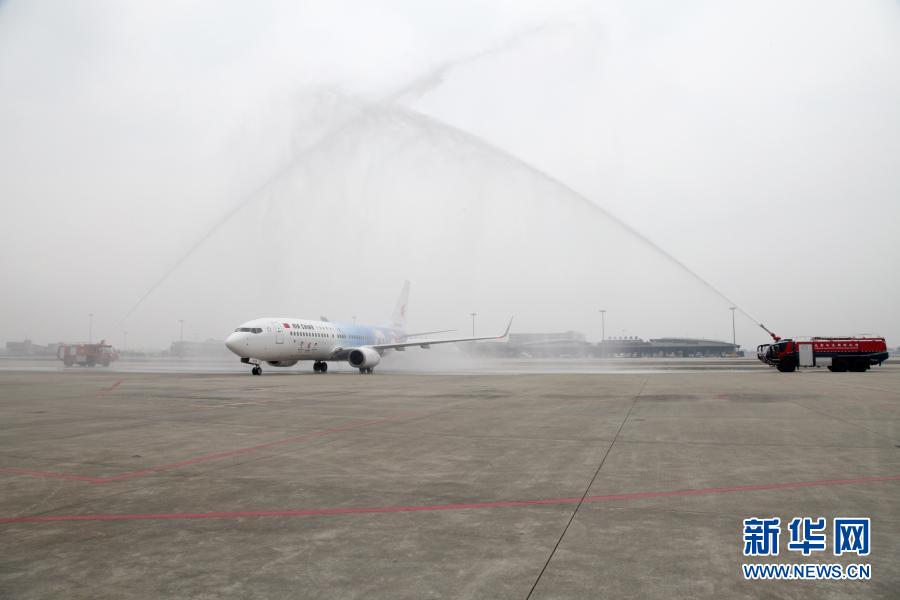 9月5日,中國國際航空公司冬奧主題彩繪飛機(jī)“冬奧冰雪號”在成都雙流機(jī)場正式亮相并參加“過水門”儀式。新華社發(fā)(中國國際航空公司西南分公司供圖)