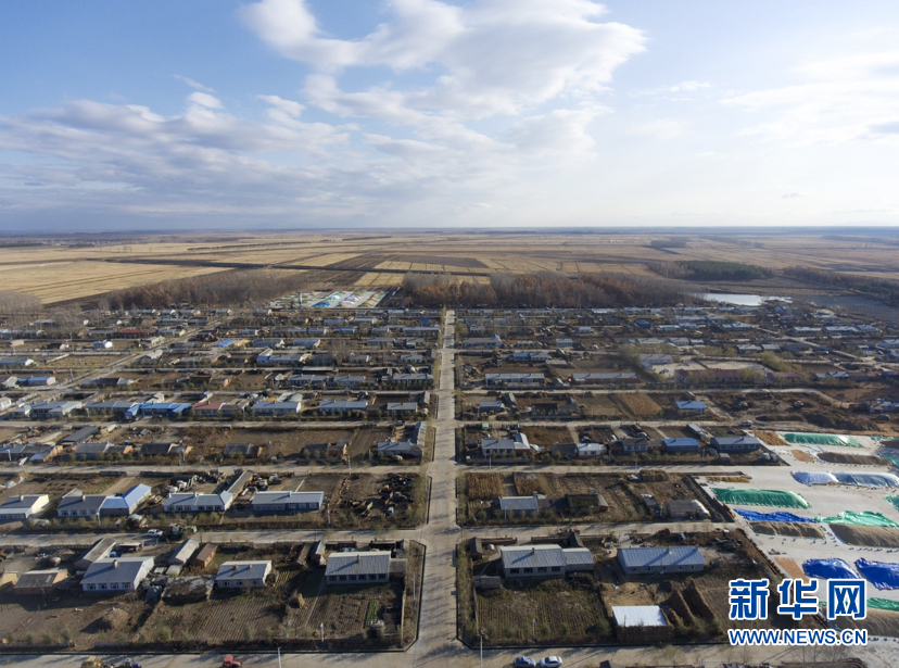 10月29日拍攝的黑龍江省鶴崗市綏濱縣忠仁鎮(zhèn)黎明村風(fēng)貌(無(wú)人機(jī)照片)。新華社發(fā)