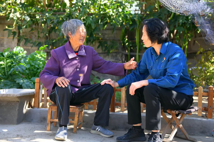 一名駐村第一書記(右)在走訪村民 朱崢 攝