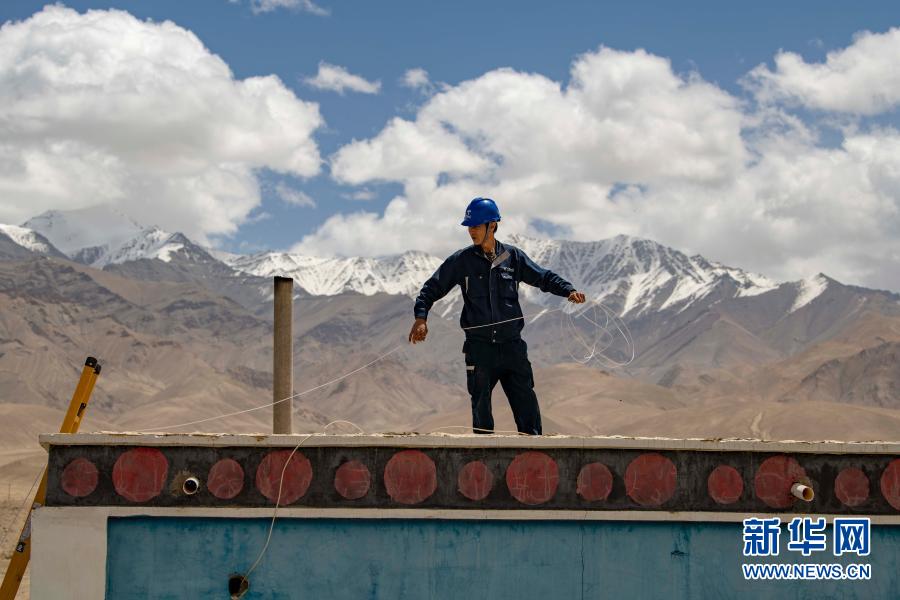 在新疆喀什地區(qū)塔什庫爾干塔吉克自治縣,工作人員為當?shù)剞r(nóng)戶鋪設(shè)入戶光纖(6月10日攝)。目前,喀什地區(qū)已實現(xiàn)光纖入戶全覆蓋。新華社記者 胡虎虎 攝