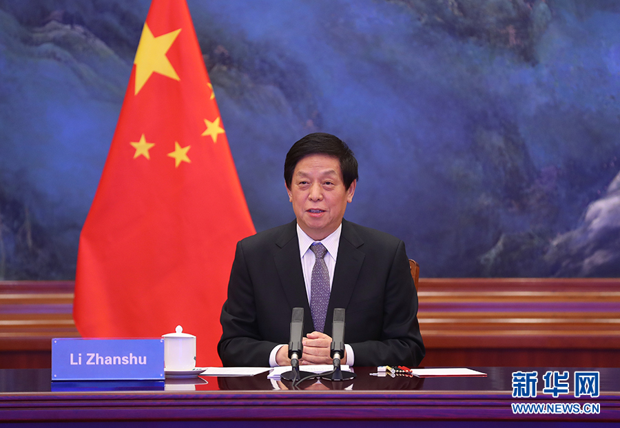 11月23日,全國(guó)人大常委會(huì)委員長(zhǎng)栗戰(zhàn)書(shū)在北京以視頻方式同老撾國(guó)會(huì)主席巴妮舉行會(huì)談。新華社記者 姚大偉 攝