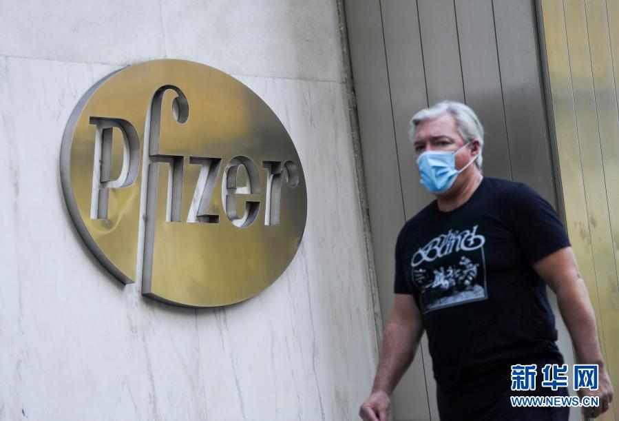 11月9日,行人從位于美國紐約的輝瑞全球總部大樓前走過。新華社記者 王迎 攝